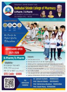 Radhabai Shinde College Of Pharmacy is an establishment of Dinkarrao K. Shinde smark trust, Gadhinglaj. The prime motive of the institute is to inculcate moral values in the students of 21st century. Even the institute aspires to change rural potential into modern technologies. Radhabai Shinde College Of Pharmacy is one of the outcomes of sincere efforts of Adv.